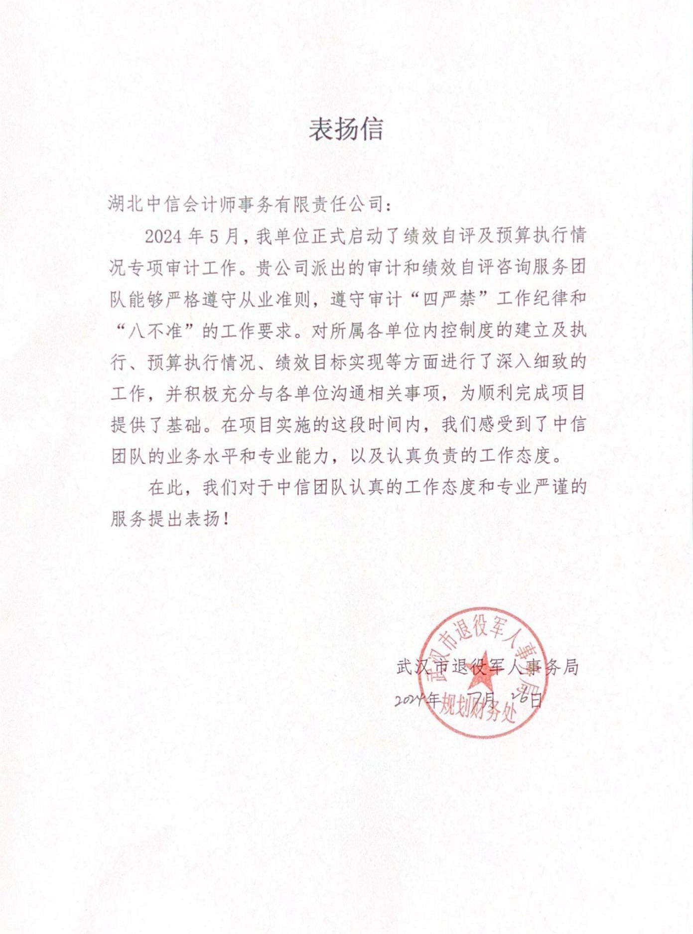 武漢市農(nóng)業(yè)科學(xué)審計處表揚信