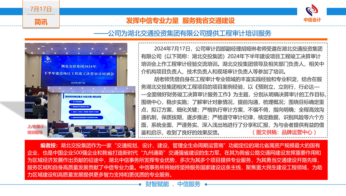 ——公司為湖北交通投資集團有限公司提供工程審計培訓(xùn)服務(wù) -