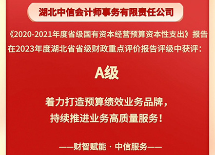 04/252024喜報:在2023年度湖北省省級財政重點評價報告評級中獲評A級