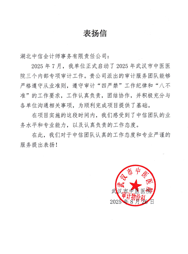 武漢市中醫(yī)院表?yè)P(yáng)信