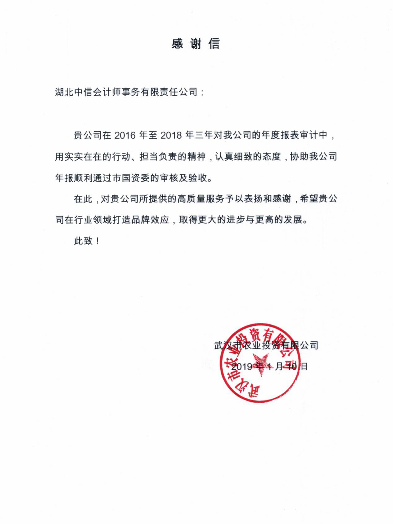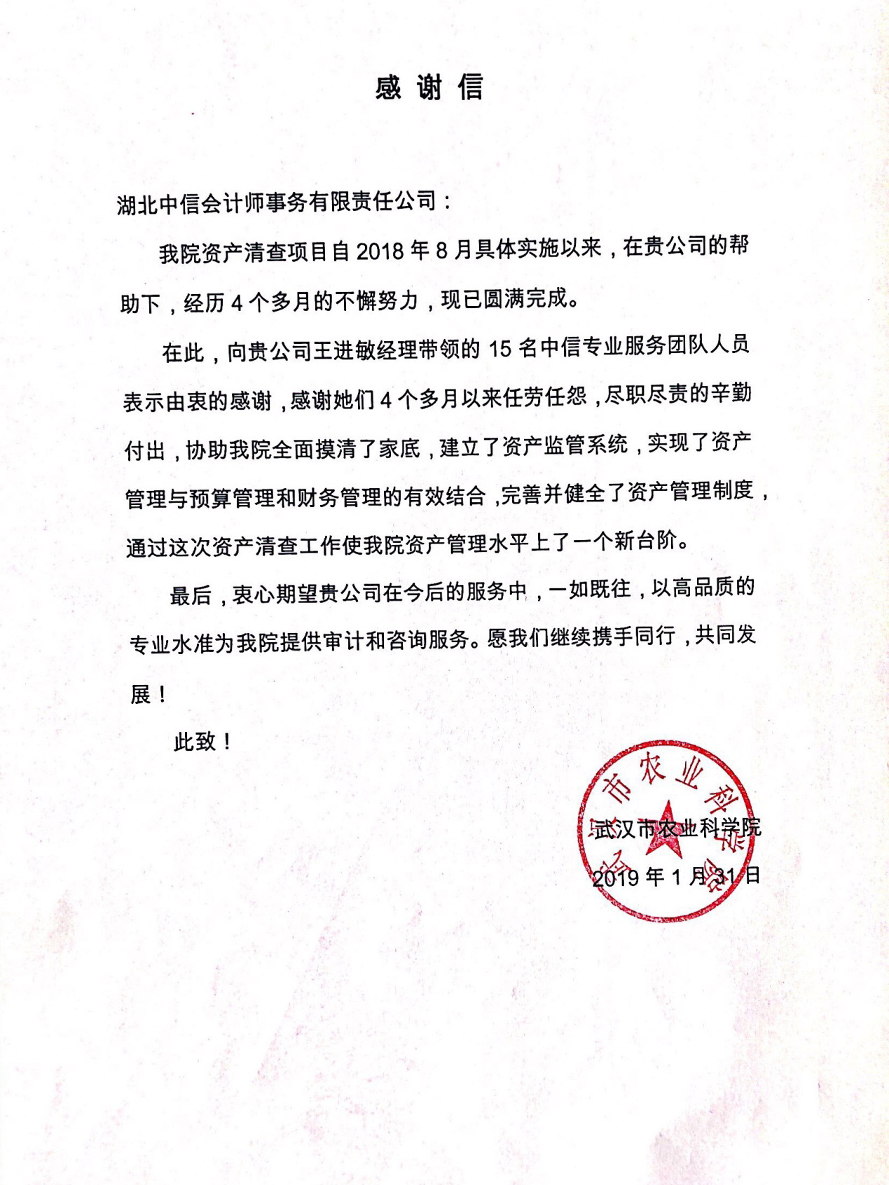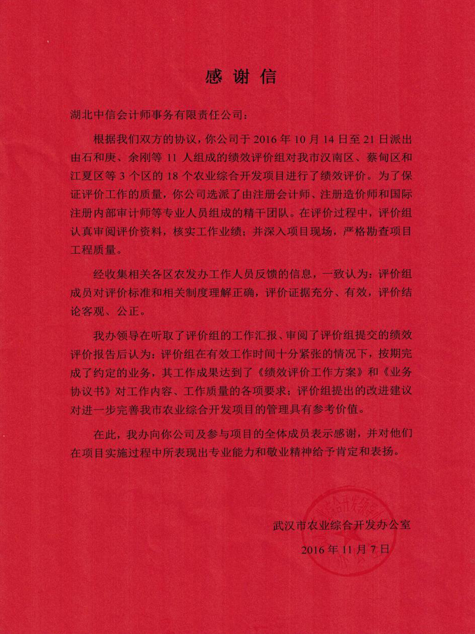武漢市農(nóng)業(yè)綜合開發(fā)辦公室績效評價(jià)項(xiàng)目感謝信
