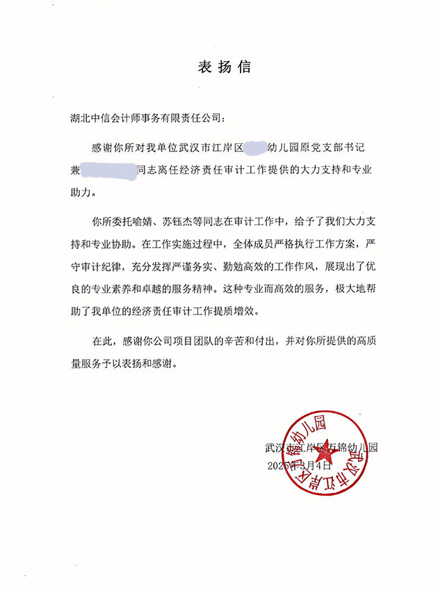 武漢市江岸區(qū)萬(wàn)錦幼兒園表?yè)P(yáng)信