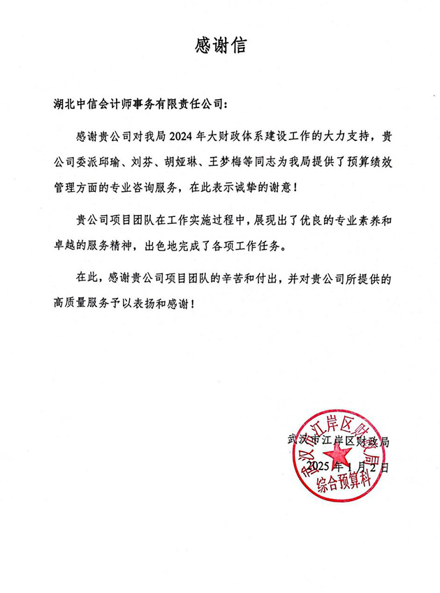 武漢供銷資產(chǎn)經(jīng)營(yíng)集團(tuán)有限公司感謝信