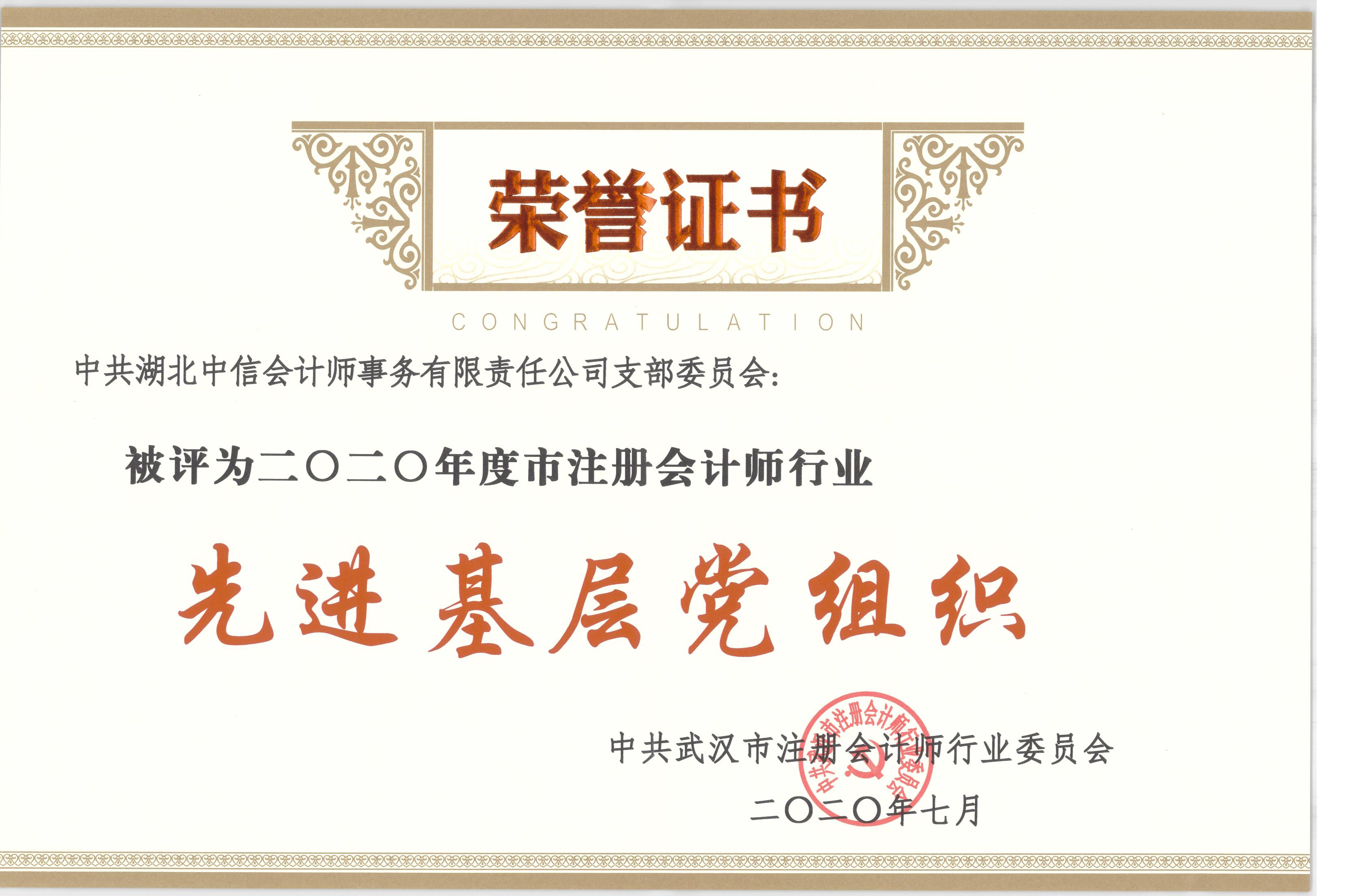2020年度武漢市注冊(cè)會(huì)計(jì)師行業(yè)“先進(jìn)基層黨組織”